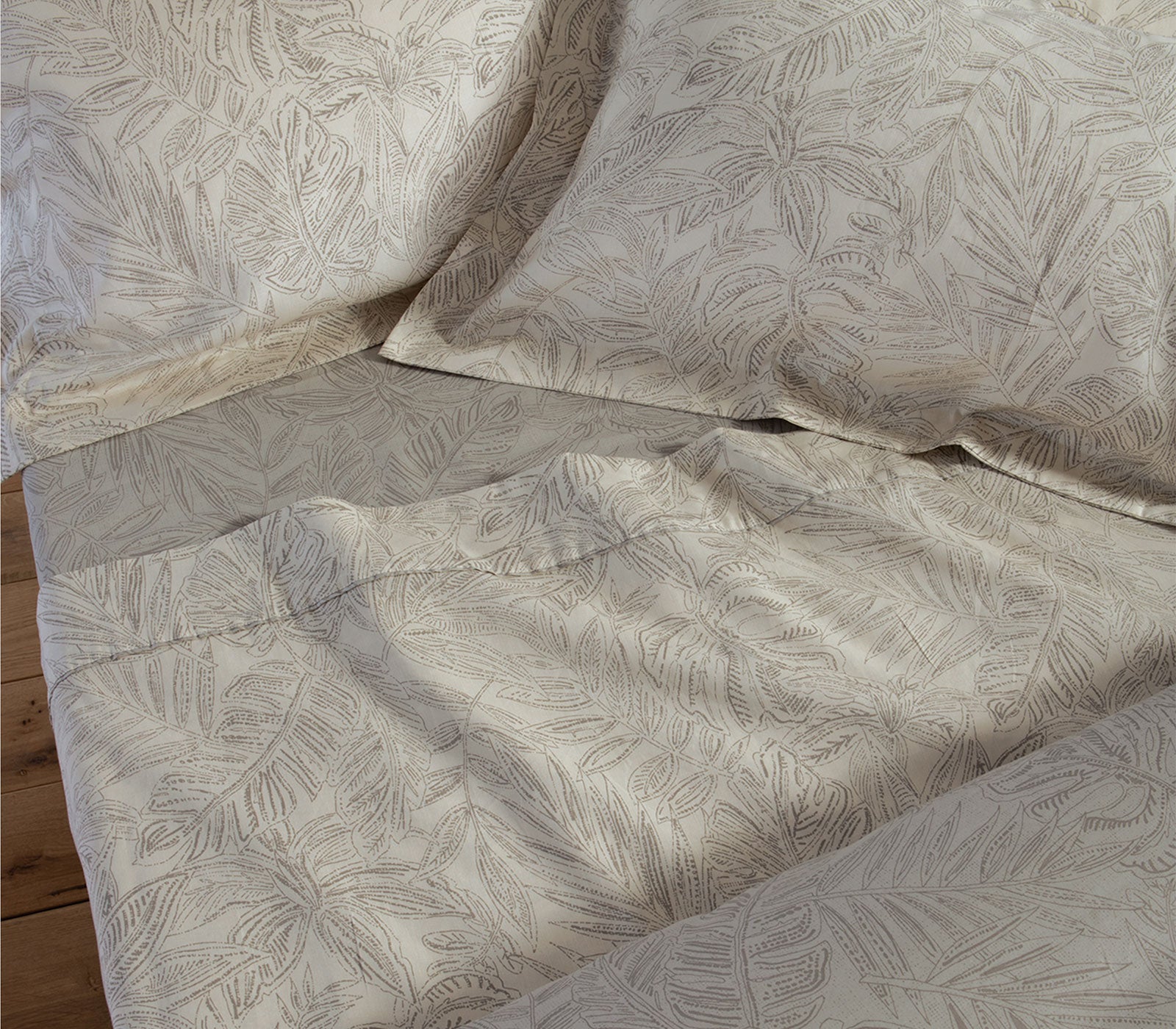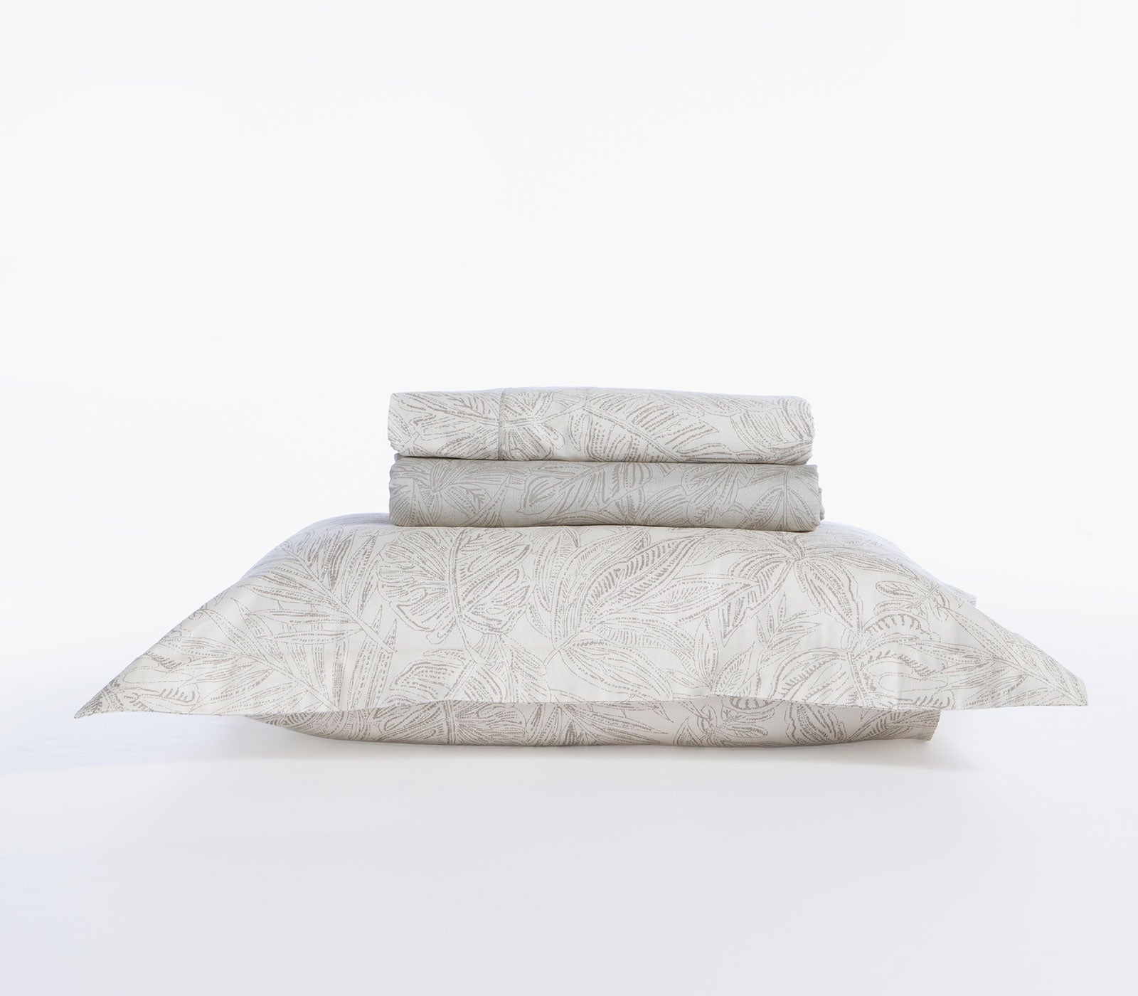 Σετ σεντόνια υπέρδιπλα Tundra σε αποχρώσεις εκρού και γκρι της εταιρείας Nef-Nef Homeware. Είναι κατασκευασμένο από βαμβακοσατέν, ένα ύφασμα υψηλής ποιότητας που προσφέρει ιδιαίτερα απαλή υφή και κομψή όψη στο κρεβάτι. Το πανωσέντονο σε διάσταση 240Χ270cm διαθέτει διακριτικό μοτίβο με κομψά φύλλα σε γκρι τόνους πάνω σε εκρού φόντο, ενώ το κατωσέντονο διάστασης 240Χ270cm ακολουθεί το ίδιο εκλεπτυσμένο σχέδιο. Το σετ συμπληρώνεται από δύο μαξιλαροθήκες Oxford 52Χ72cm που συνεχίζουν αρμονικά το μοτίβο. Συνδυάστε το με το κουβερλί της ίδιας σειράς για ένα ολοκληρωμένο αποτέλεσμα στο υπνοδωμάτιό σας.