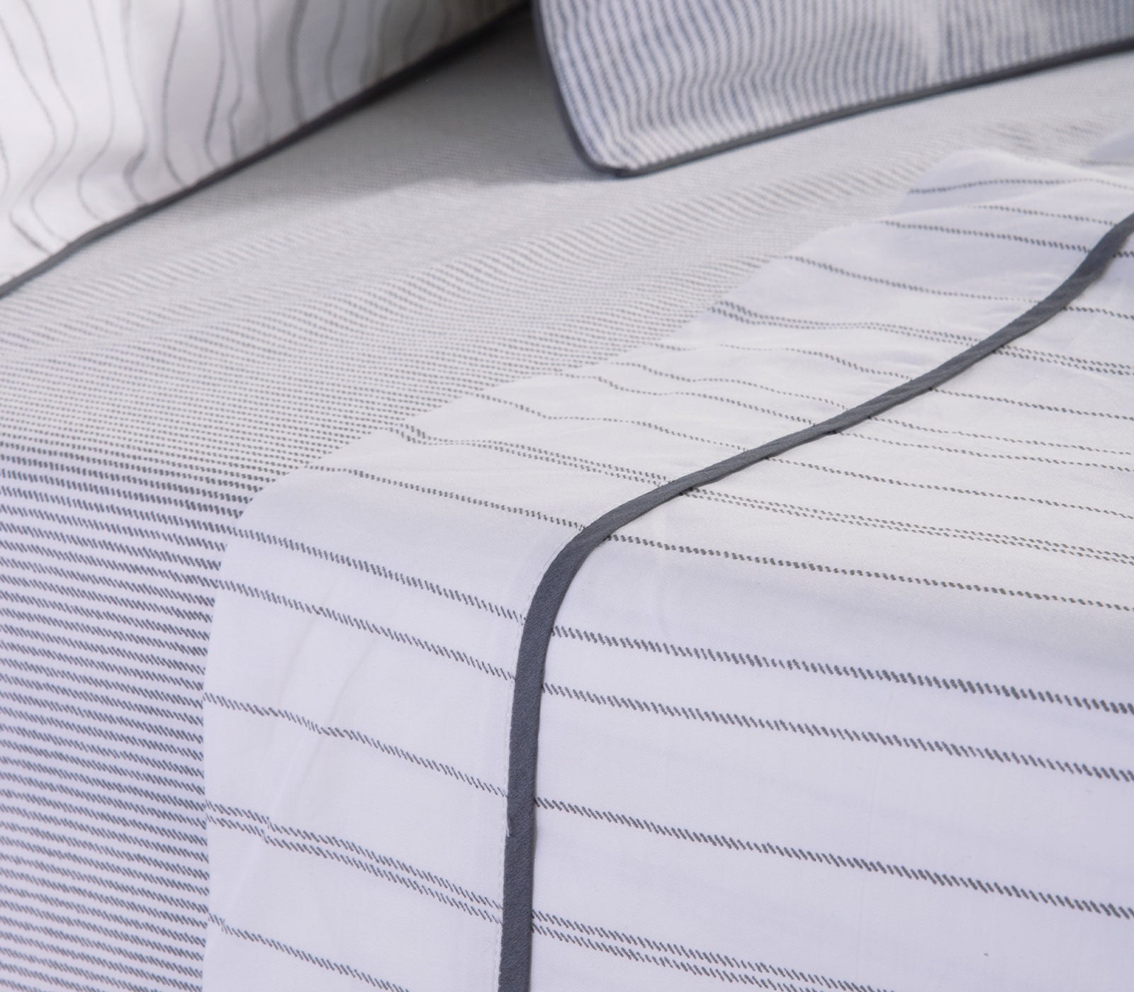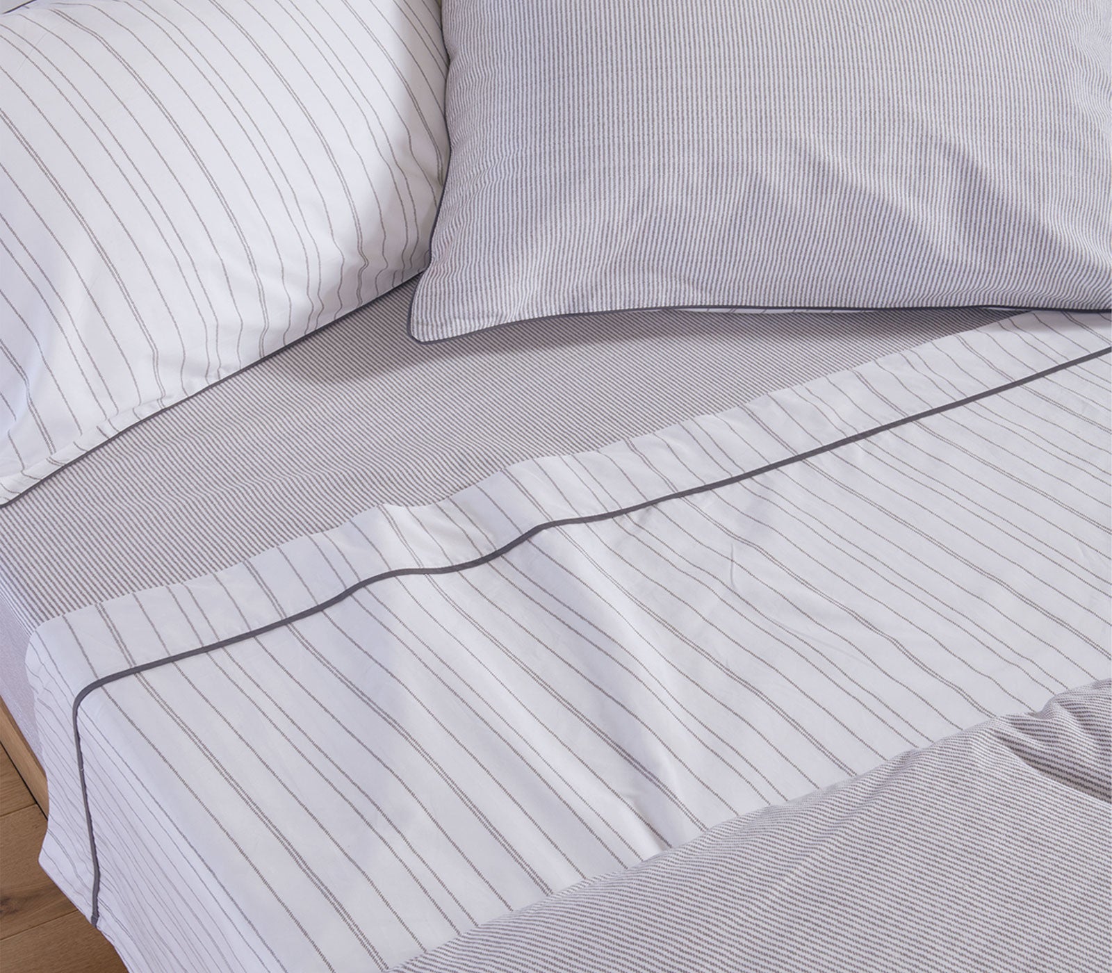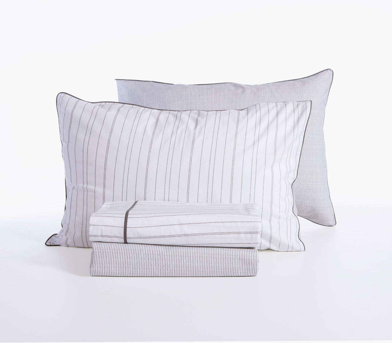 Σετ σεντόνια υπέρδιπλα Optimal σε λευκή απόχρωση με διακριτικές γκρι λεπτομέρειες της εταιρείας Nef-Nef Homeware. Είναι κατασκευασμένο από βαμβακοσατέν υψηλής ποιότητας που προσφέρει εξαιρετικά απαλή, λεία υφή και κομψή όψη στο κρεβάτι. Το πανωσέντονο σε διάσταση 240Χ270cm διαθέτει κομψό ριγέ μοτίβο με λεπτές γκρι γραμμές πάνω σε λευκό φόντο, δημιουργώντας μια διαχρονική και εκλεπτυσμένη αισθητική στο υπνοδωμάτιο. Το σετ ολοκληρώνεται με δύο μαξιλαροθήκες 52Χ72cm που ακολουθούν το ίδιο διακριτικό ριγέ σχέδιο. Συνδυάστε το με κουβερλί της αρεσκείας σας για ένα ολοκληρωμένο αποτέλεσμα!
