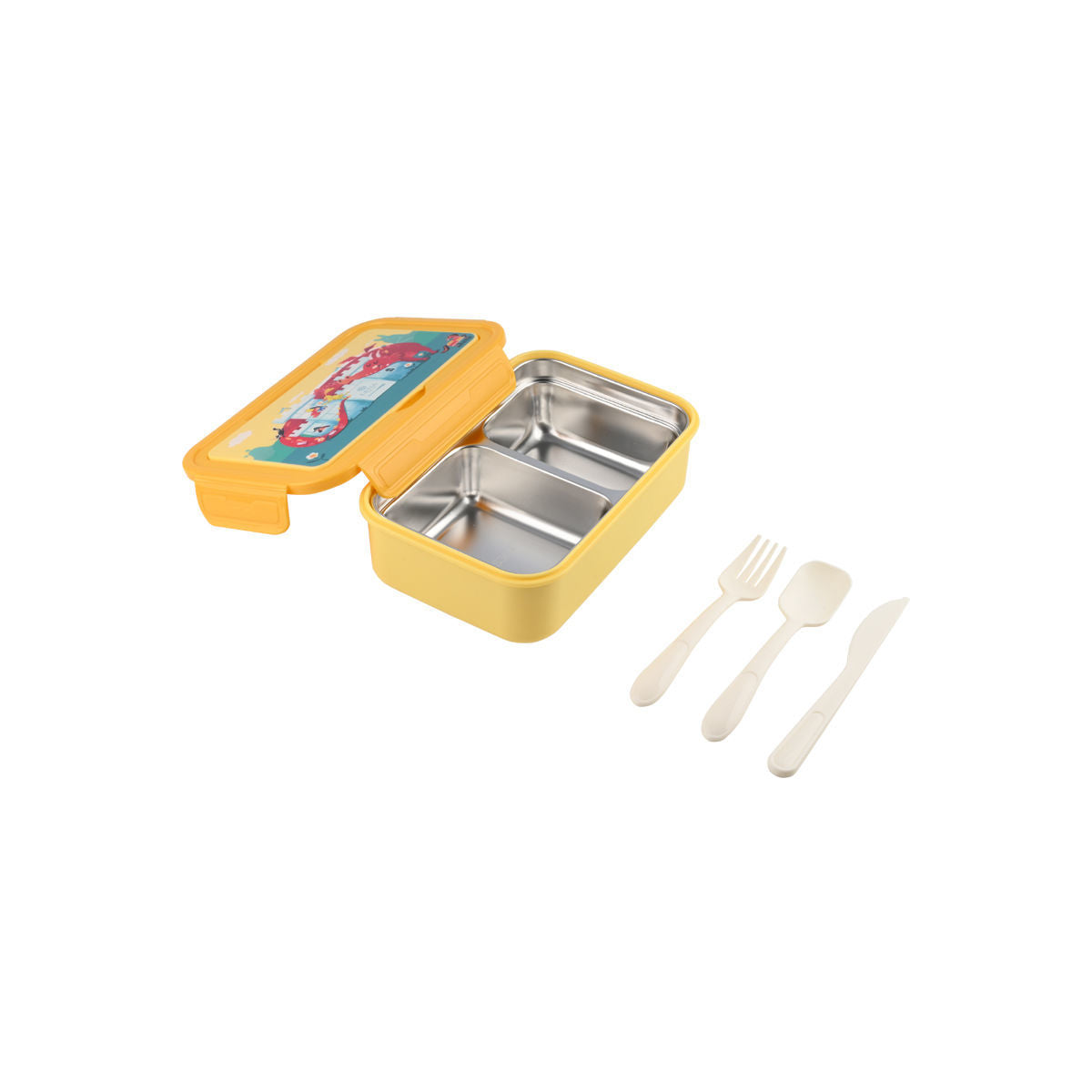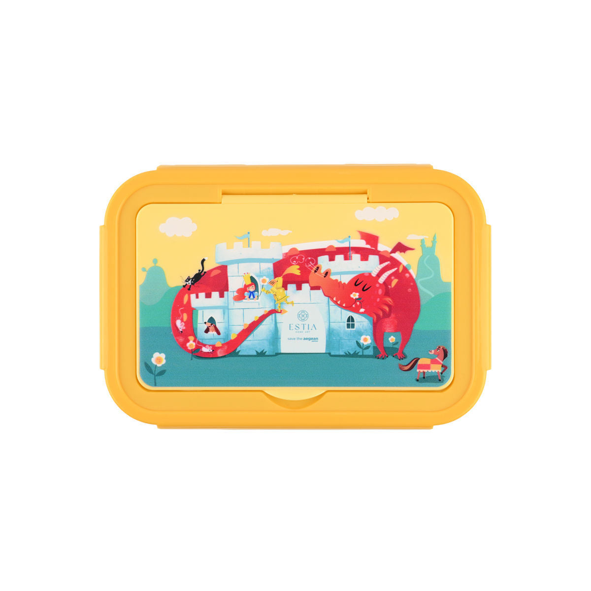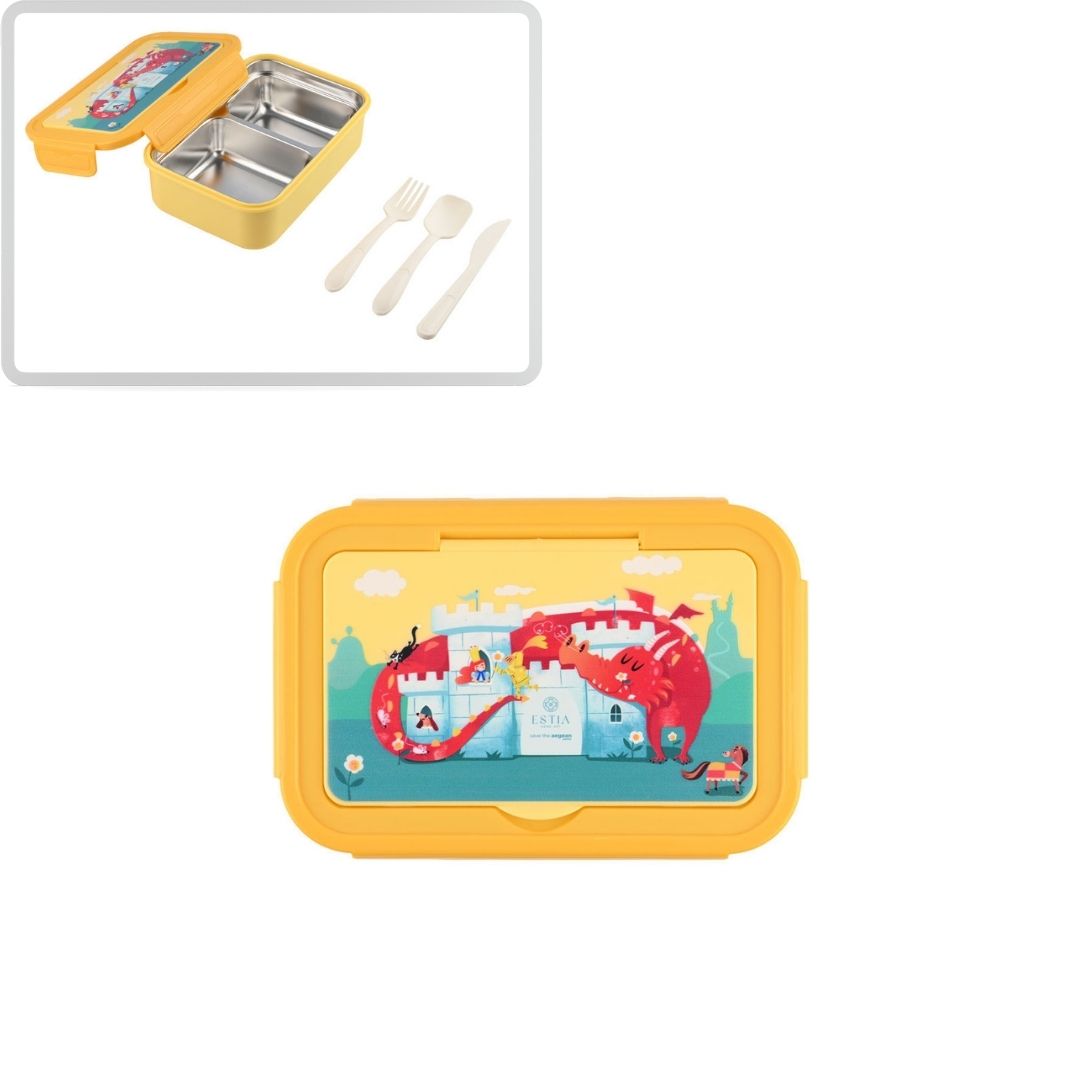 Τάπερ Estia Παιδικό Ανοξείδωτο 2 Θήκες Κουτάλι Πιρούνι Μαχαίρι 900ml Κίτρινο Fortress Dragon