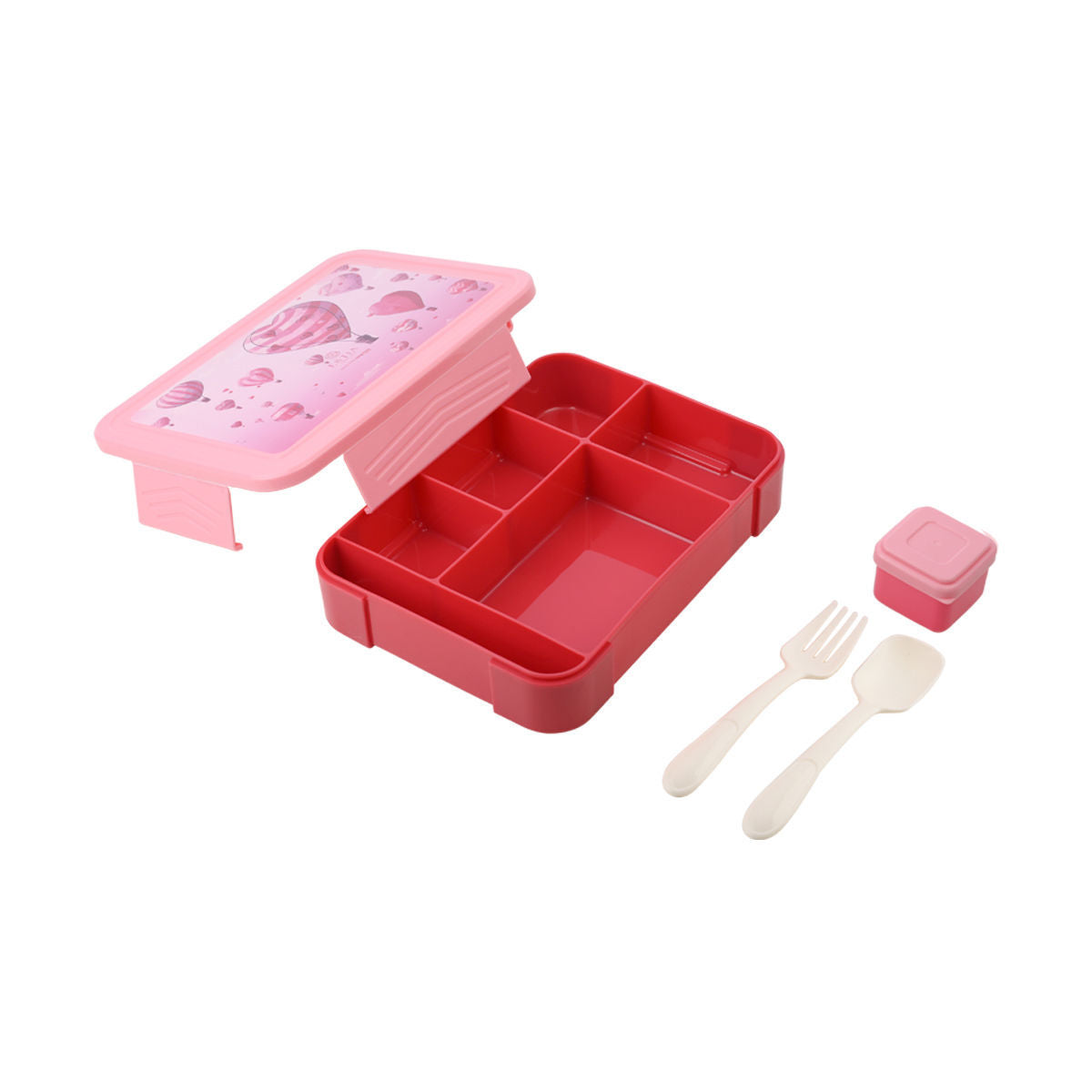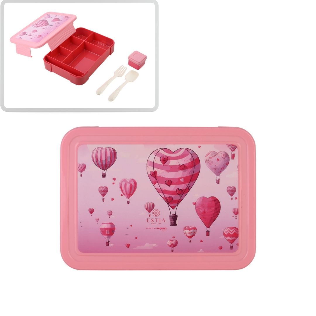 Παιδικό φαγητοδοχείο Estia σε ροζ χρώμα με σχέδιο αερόστατο, κατασκευασμένο από ανθεκτικό πλαστικό υλικό υψηλής ποιότητας, χωρίς BPA. Διαθέτει χωρητικότητα 1.330 ml και αποσπώμενη εσωτερική θήκη με 5 χωρίσματα, ώστε να διατηρούνται τα φαγητά ξεχωριστά και οργανωμένα. Περιλαμβάνει παιδικό κουτάλι, πιρούνι και μικρό δοχείο για σως, προσφέροντας πλήρη πρακτικότητα για το σχολείο ή την εκδρομή. Κατάλληλο για φούρνο μικροκυμάτων, ψυγείο και καταψύκτη, ενώ πλένεται εύκολα στο πλυντήριο πιάτων (χωρίς το καπάκι). Ένα πολύχρωμο και εργονομικό φαγητοδοχείο της Estia, ιδανικό για το κολατσιό ή το γεύμα κάθε μικρού ήρωα. Συνδυάστε το με θερμός και ισοθερμική τσάντα φαγητού Estia για ένα ολοκληρωμένο σετ καθημερινής χρήσης.