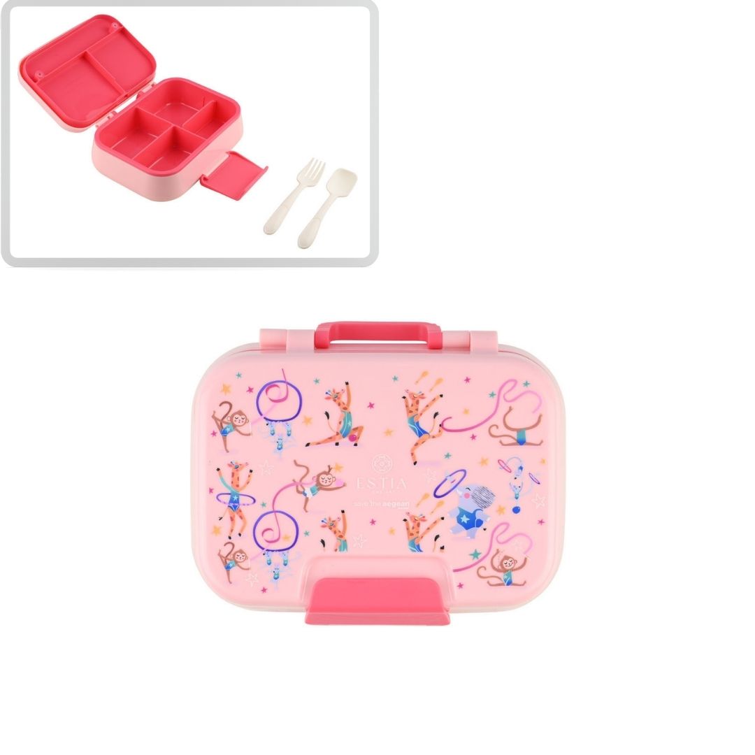 Παιδικό φαγητοδοχείο Estia σε ροζ χρώμα με σχέδιο ζωάκια που χορεύουν, κατασκευασμένο από ανθεκτικό πλαστικό υλικό υψηλής ποιότητας, χωρίς BPA. Διαθέτει χωρητικότητα 1.030 ml και διπλό επίπεδο για να διαχωρίζετε φαγητά με το ένα επίπεδο να έχει 4 ξεχωριστές θήκες, ώστε να διατηρούνται τα τρόψιμα χωριστά και οργανωμένα. Περιλαμβάνει παιδικό κουτάλι και πιρούνι, προσφέροντας πλήρη πρακτικότητα για το σχολείο ή την εκδρομή. Κατάλληλο για φούρνο μικροκυμάτων, ψυγείο και καταψύκτη, ενώ πλένεται εύκολα στο πλυντήριο πιάτων (χωρίς το καπάκι). Ένα πολύχρωμο και εργονομικό φαγητοδοχείο της Estia, ιδανικό για το κολατσιό ή το γεύμα κάθε μικρού ήρωα. Συνδυάστε το με θερμός και ισοθερμική τσάντα φαγητού Estia για ένα ολοκληρωμένο σετ καθημερινής χρήσης.
