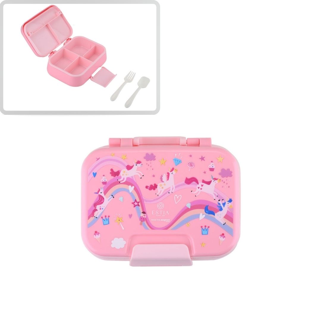 Τάπερ Estia Παιδικό 2 Επιπέδων Με Κουτάλι Και Πιρούνι 1030ml Ροζ Rainbow Dreams
