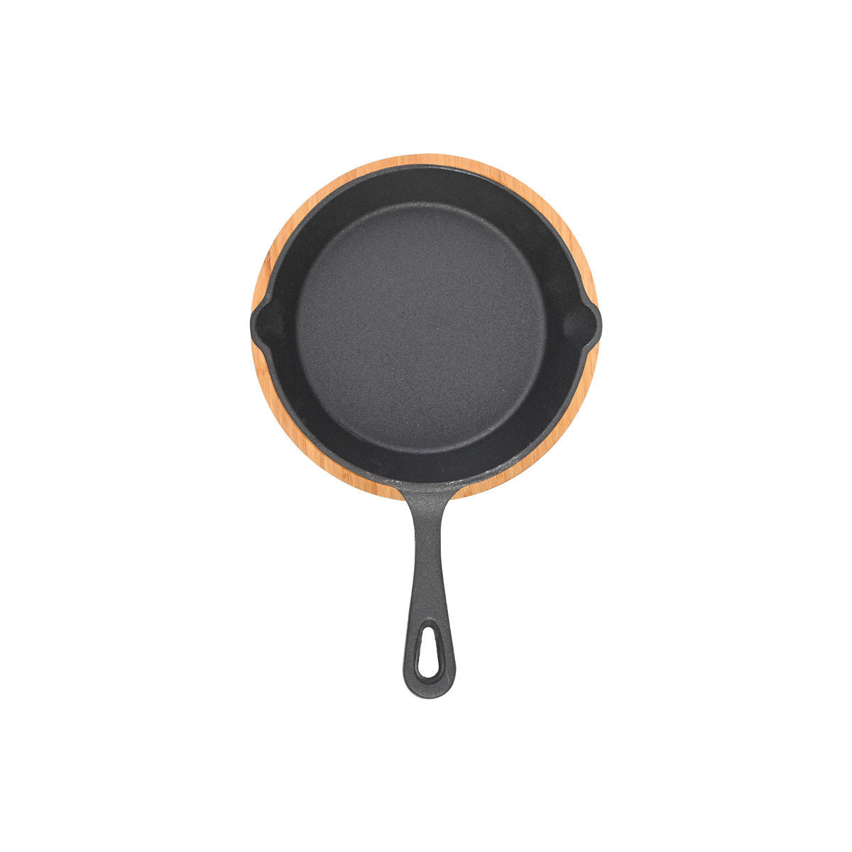 Τηγάνι Μαύρο Σερβιρίσματος Από Χυτοσίδηρο Με Βάση Bamboo 10cm