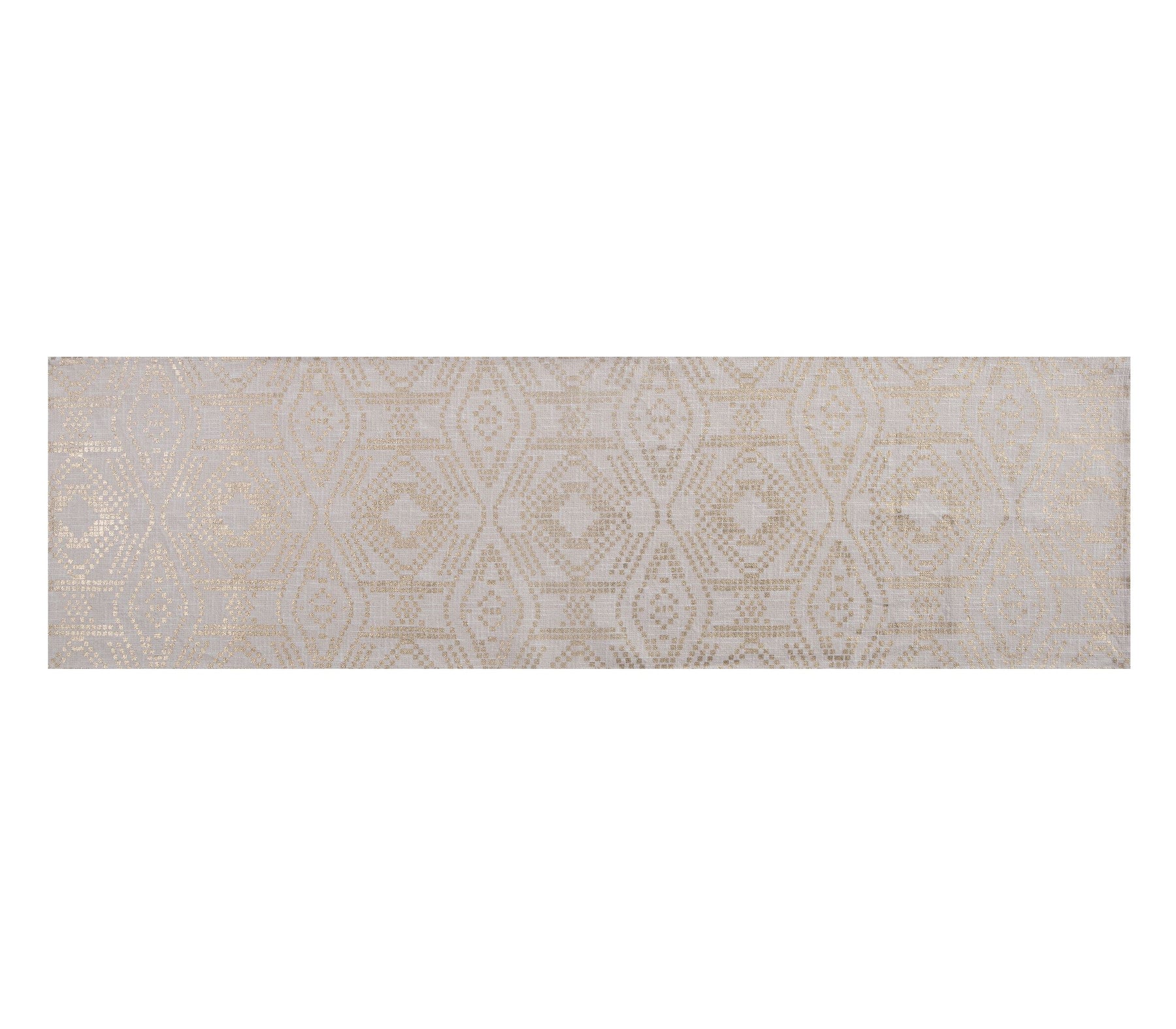 Χαρίστε λάμψη και κομψότητα στο τραπέζι σας με την τραβέρσα Gold Glam της εταιρείας Nef-Nef Homeware. Σε διαστάσεις 45x150, ξεχωρίζει για το εκρού φόντο της και το μεταλλιζέ χρυσό γεωμετρικό μοτίβο που αποπνέει διακριτική πολυτέλεια. Συνδυάζεται εύκολα με ξύλινα, λευκά ή μοντέρνα σερβίτσια, ενώ αναδεικνύει τόσο γιορτινές όσο και καθημερινές στιγμές με ιδιαίτερο στιλ. Το υλικό της προσφέρει σταθερότητα και αντοχή, διατηρώντας παράλληλα την αισθητική του υφάσματος υψηλής ποιότητας. Ιδανική επιλογή για όσους αγαπούν τις μικρές λεπτομέρειες που κάνουν τη διαφορά στη διακόσμηση του σαλονιού ή της τραπεζαρίας.