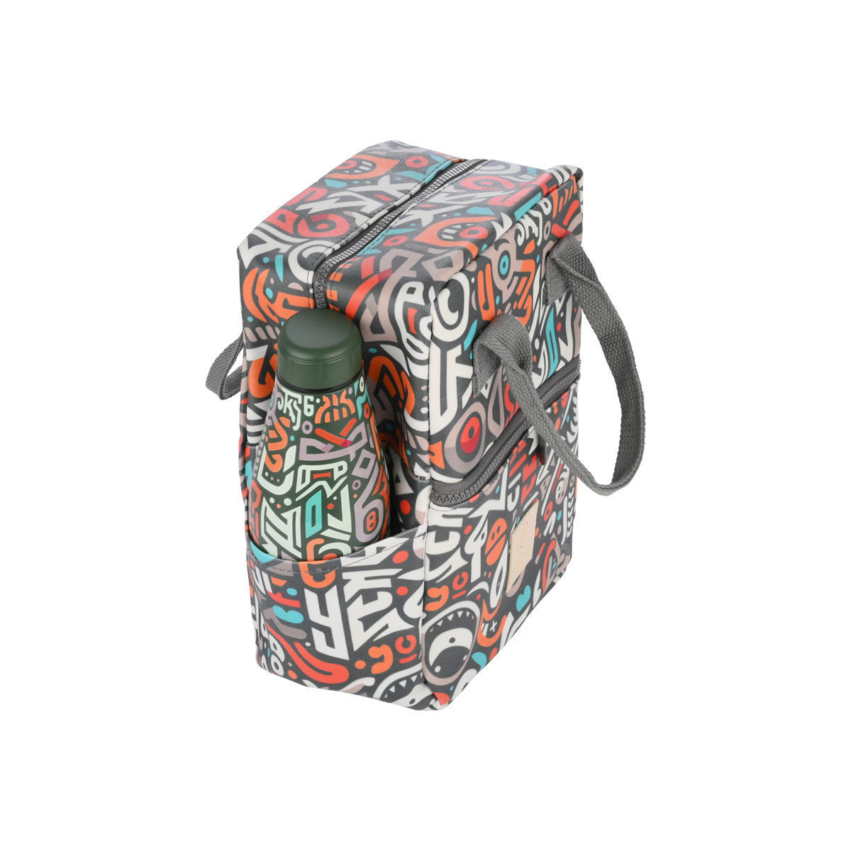 Ισοθερμική τσάντα φαγητού της εταιρείας Estia σε μαύρo χρώμα και πολύχρωμα γεωμετρικά σχέδια σε όλη την επιφάνεια. Εξωτερικά είναι κατασκευασμένη από ανθεκτικό ύφασμα 100% βαμβάκι, ενώ εσωτερικά διαθέτει ισοθερμική επένδυση που διατηρεί το φαγητό ή το ρόφημά σας στην ιδανική θερμοκρασία για περισσότερη ώρα. Διαθέτει δύο θέσεις για μπουκάλια, μία στην κύρια θήκη και μία εξωτερικά, καθώς και πρακτική εξωτερική θήκη με φερμουάρ για κλειδιά, κινητό ή αξεσουάρ. Έχει χωρητικότητα 7Lt. Η ιδανική τσάντα για να έχετε μαζί σας το γεύμα και τα ροφήματά σας στο γραφείο, στο σχολείο ή στο ταξίδι.
