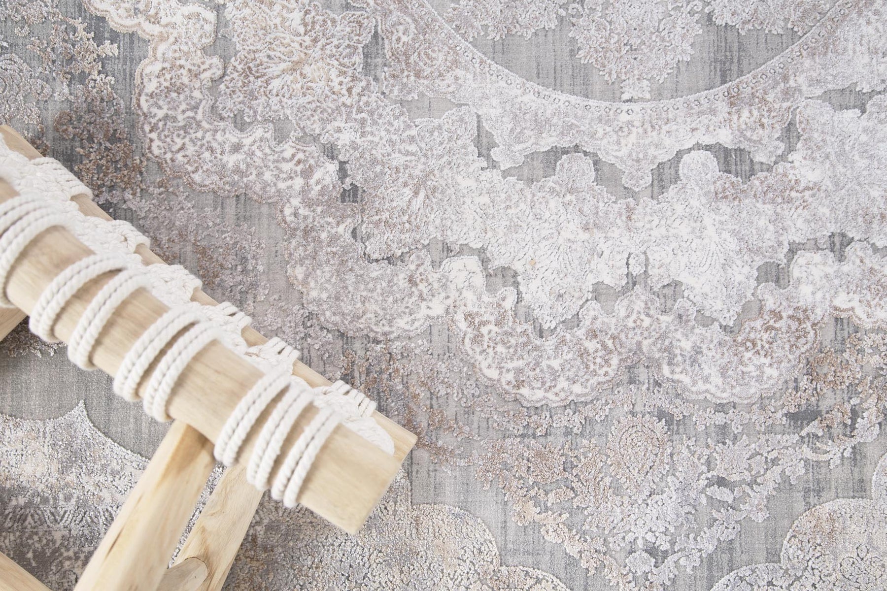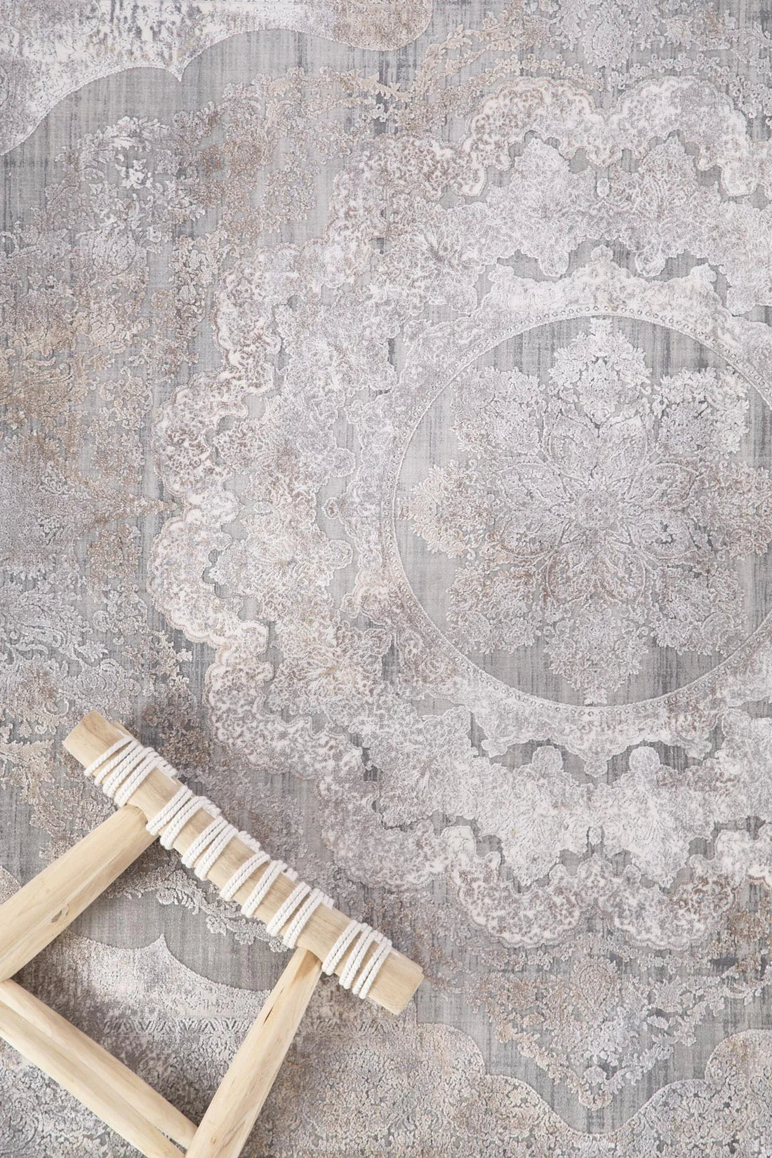 Vintage χαλί Bamboo Silk της εταιρίας Royal Carpet σε γκρι και μπεζ-καφέ αποχρώσεις διαστάσεων 100X160cm. Με σύνθεση από τεχνητό μετάξι και ακρυλικό αφήνει την αίσθηση των σβησμένων κλασικών γεωμετρικών σχεδίων. Η συλλογή Bamboo Silk ξεχωρίζει για τη μεταξένια υφή και τη διακριτική της λάμψη, προσφέροντας αίσθηση πολυτέλειας και κομψότητας σε κάθε χώρο. Διαθέτει ανάγλυφη επιφάνεια που αναδεικνύει τις αποχρώσεις και τα μοτίβα του με ιδιαίτερη φινέτσα. Είναι υποαλλεργικό, αντιστατικό και εύκολο στο καθάρισμα, ενώ είναι κατάλληλο για χρήση και με ενδοδαπέδια θέρμανση. Ένα χαλί υψηλής ποιότητας που συνδυάζει πολυτελή εμφάνιση, απαλή υφή και διαχρονικό στυλ, ιδανικό για σαλόνι, τραπεζαρία ή ακόμη και υπνοδωμάτιο. Συνδυάστε με λευκά είδη για ένα ολοκληρωμένο αποτέλεσμα διακόσμησης.