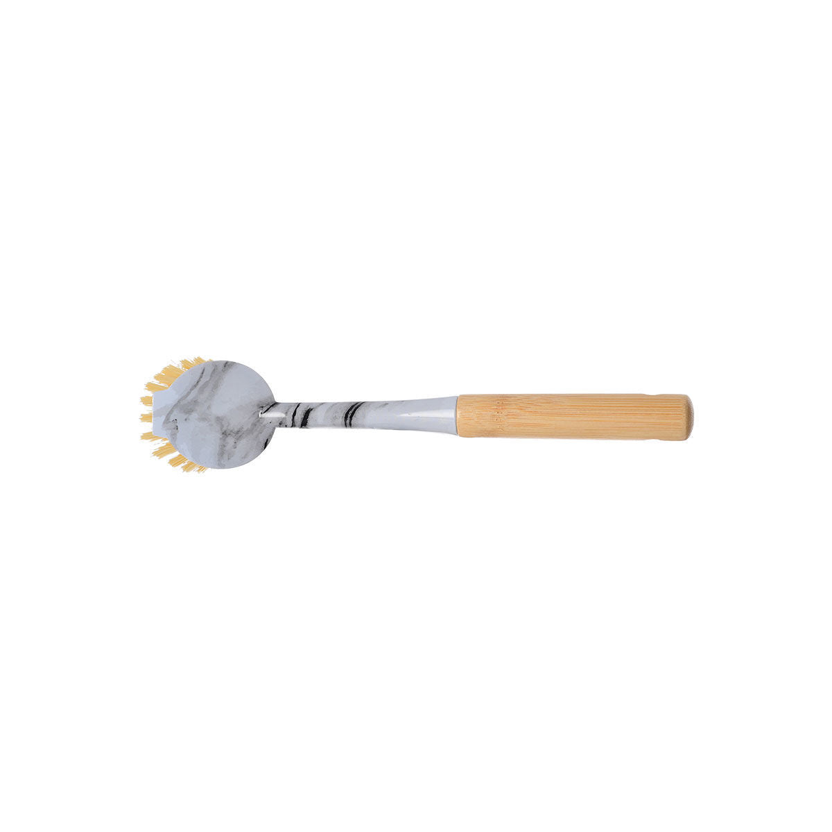 Η στρογγυλή βούρτσα καθαρισμού πιάτων Estia από τη συλλογή Bamboo Essentials διαθέτει ανθεκτικές, απαλές ίνες για αποτελεσματικό καθαρισμό χωρίς γρατζουνιές, ενώ η εργονομική λαβή από bamboo προσφέρει άνετο και σταθερό κράτημα. Μια καθημερινή λύση για την κουζίνα, ιδανική για πιάτα, κατσαρόλες και σκεύη, με μοντέρνα εμφάνιση σε λευκό χρώμα με εφέ μαρμάρου που ταιριάζει σε κάθε χώρο.