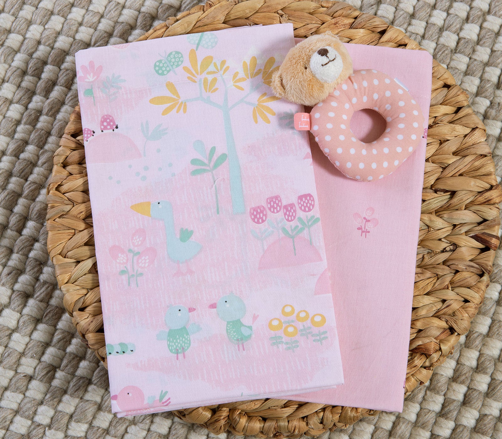 Βρεφικά σεντόνια λίκνου σετ 2 τεμαχίων της εταιρείας Nef-Nef Homeware σε απαλή ροζ απόχρωση από τη σειρά Spring Happiness. Είναι κατασκευασμένα από 100% βαμβάκι που προσφέρει απαλή υφή, άνεση και ευχάριστη αίσθηση στο ευαίσθητο βρεφικό δέρμα. Το σετ περιλαμβάνει πανωσέντονο και κατωσέντονο διακοσμημένα με χαριτωμένα σχέδια ζώων, λουλουδιών και στοιχείων της φύσης σε παστέλ αποχρώσεις που δημιουργούν μια τρυφερή και παιχνιδιάρικη ατμόσφαιρα στο βρεφικό δωμάτιο. Ένα όμορφο σετ που χαρίζει γλυκιά αισθητική και άνεση στον χώρο του μωρού σας.