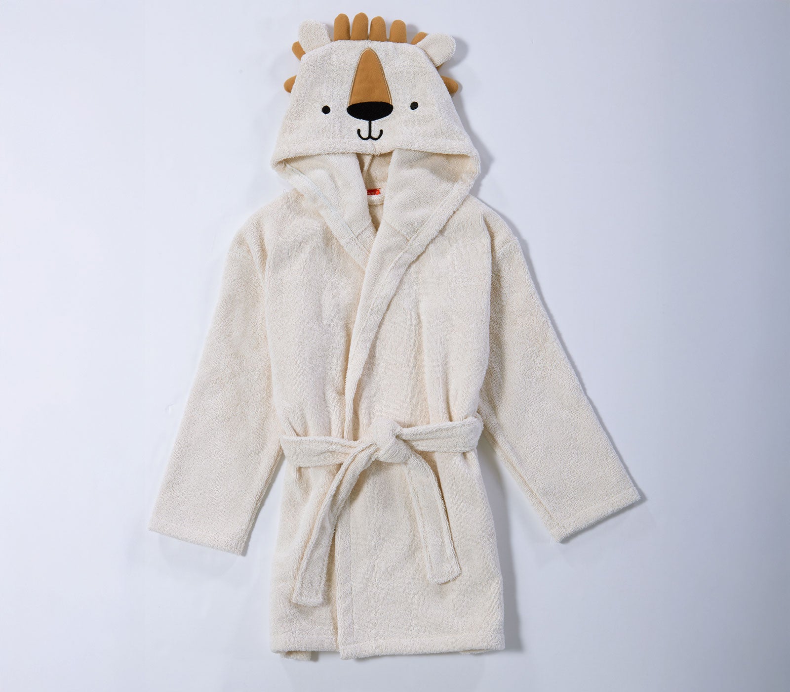 Βρεφικό μπουρνούζι από τη σειρά Jungle In Motion της εταιρείας Nef-Nef Homeware σε εκρού απόχρωση. Είναι κατασκευασμένο από 100% βαμβάκι υψηλής ποιότητας που προσφέρει απαλή υφή, εξαιρετική απορροφητικότητα και φροντίδα για το ευαίσθητο δέρμα του μωρού μετά το μπάνιο. Η κουκούλα διακοσμείται με χαριτωμένο κεντημένο πρόσωπο λιονταριού και μικρές υφασμάτινες λεπτομέρειες που θυμίζουν χαίτη, χαρίζοντας παιχνιδιάρικη και τρυφερή αισθητική. Η ιδανική επιλογή για να κρατά το μωρό σας ζεστό και άνετο μετά από κάθε μπάνιο.