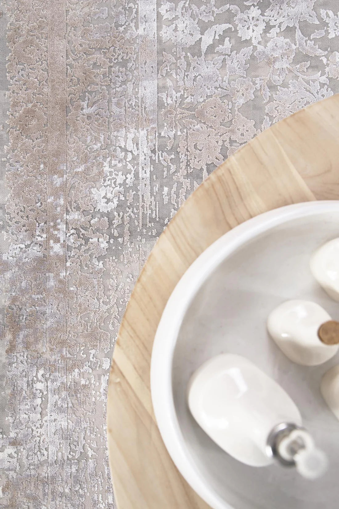 Μοντέρνο χαλί Bamboo Silk της εταιρίας Royal Carpet σε γκρι και μπεζ-καφέ αποχρώσεις διαστάσεων 0.80X150cm. Με σύνθεση από τεχνητό μετάξι και ακρυλικό αφήνει την αίσθηση των σβησμένων κλασικών γεωμετρικών σχεδίων. Η συλλογή Bamboo Silk ξεχωρίζει για τη μεταξένια υφή και τη διακριτική της λάμψη, προσφέροντας αίσθηση πολυτέλειας και κομψότητας σε κάθε χώρο. Διαθέτει ανάγλυφη επιφάνεια που αναδεικνύει τις αποχρώσεις και τα μοτίβα του με ιδιαίτερη φινέτσα. Είναι υποαλλεργικό, αντιστατικό και εύκολο στο καθάρισμα, ενώ είναι κατάλληλο για χρήση και με ενδοδαπέδια θέρμανση. Ένα χαλί υψηλής ποιότητας που συνδυάζει πολυτελή εμφάνιση, απαλή υφή και διαχρονικό στυλ, ιδανικό για σαλόνι, τραπεζαρία ή ακόμη και υπνοδωμάτιο. Συνδυάστε με λευκά είδη για ένα ολοκληρωμένο αποτέλεσμα διακόσμησης.