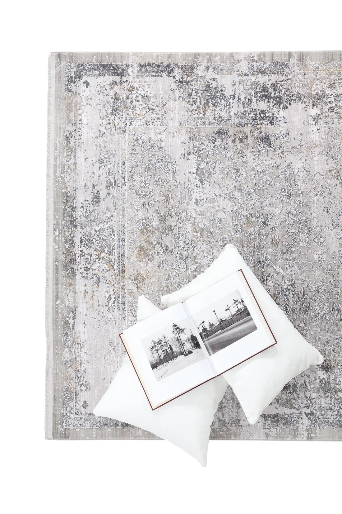 Μοντέρνο χαλί Bamboo Silk της εταιρίας Royal Carpet σε γκρι και ανθρακί αποχρώσεις διαστάσεων 160X230cm. Με σύνθεση από τεχνητό μετάξι και ακρυλικό αφήνει την αίσθηση των σβησμένων κλασικών γεωμετρικών σχεδίων. Η συλλογή Bamboo Silk ξεχωρίζει για τη μεταξένια υφή και τη διακριτική της λάμψη, προσφέροντας αίσθηση πολυτέλειας και κομψότητας σε κάθε χώρο. Διαθέτει ανάγλυφη επιφάνεια που αναδεικνύει τις αποχρώσεις και τα μοτίβα του με ιδιαίτερη φινέτσα. Είναι υποαλλεργικό, αντιστατικό και εύκολο στο καθάρισμα, ενώ είναι κατάλληλο για χρήση και με ενδοδαπέδια θέρμανση. Ένα χαλί υψηλής ποιότητας που συνδυάζει πολυτελή εμφάνιση, απαλή υφή και διαχρονικό στυλ, ιδανικό για σαλόνι, τραπεζαρία ή ακόμη και υπνοδωμάτιο. Συνδυάστε με λευκά είδη για ένα ολοκληρωμένο αποτέλεσμα διακόσμησης.