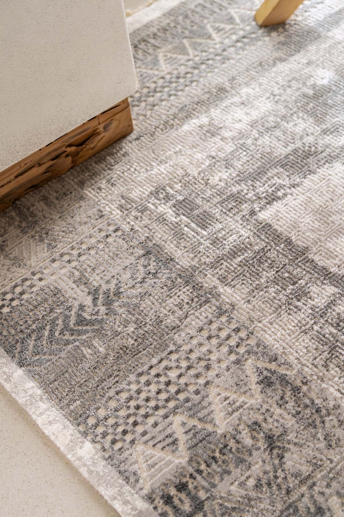 Μοντέρνο χαλί Infinity της εταιρείας Royal Carpet με σύνθεση από πολυπροπυλένιο και πολυεστέρα διαστάσεων 240X300cm. Σε κομψές αποχρώσεις του Γκρι-Λευκό, συνδυάζει το κλασικό με το μοντέρνο, προσφέροντας μια διαχρονική αισθητική που δένει αρμονικά σε κάθε χώρο. Το ανάγλυφο μοτίβο του με γεωμετρικές λεπτομέρειες δημιουργεί αίσθηση βάθους και κομψότητας, χαρίζοντας ιδιαίτερο χαρακτήρα στη διακόσμηση. Χάρη στην αντιστατική του ιδιότητα δεν συγκρατεί χνούδια και σκόνη ώστε να παραμένει εύκολο στο καθάρισμα και υποαλλεργικό. Ένα χαλί υψηλής ποιότητας, ιδανικό για το σαλόνι, την τραπεζαρία ή την κρεβατοκάμαρα. Για να ολοκληρώσετε την ατμόσφαιρα του σπιτιού σας συνδυάστε το με λευκά είδη!