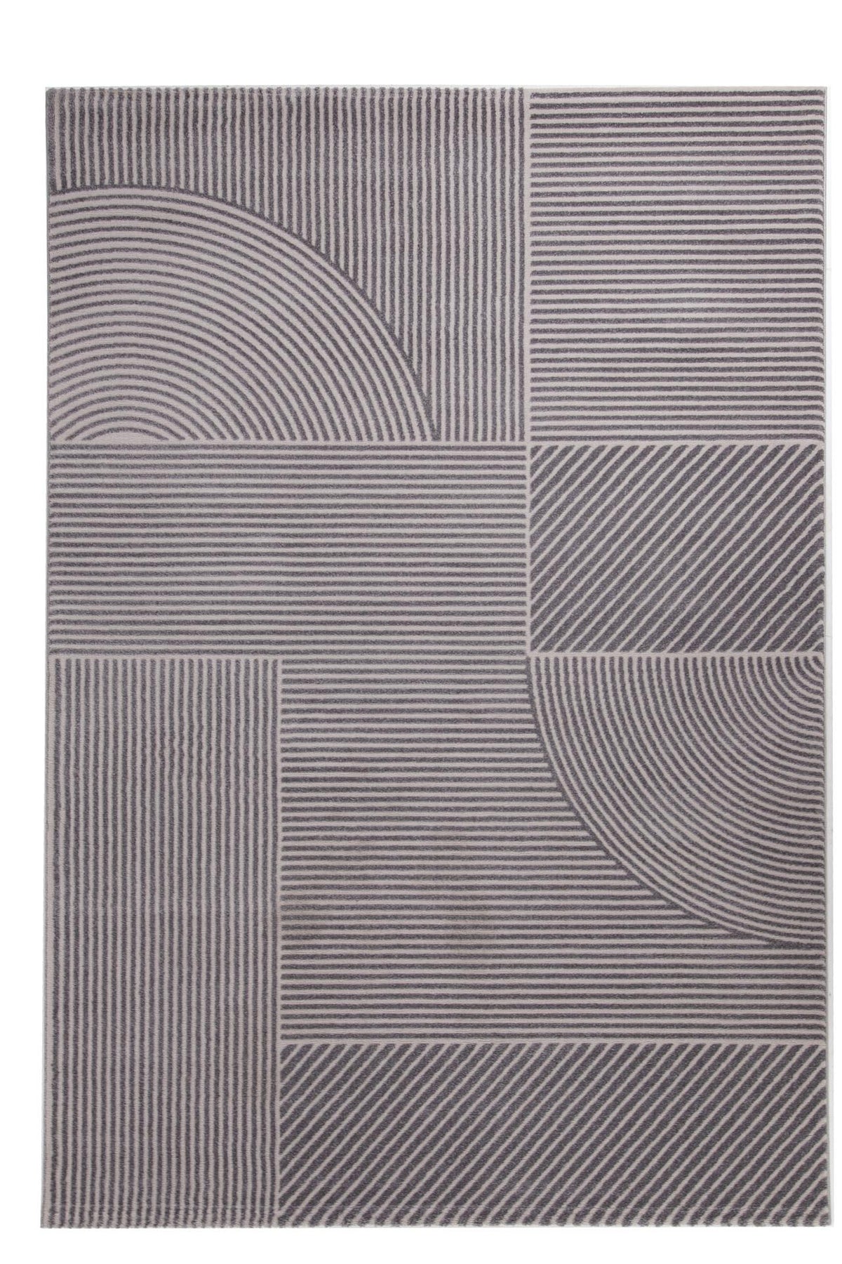 Μοντέρνο χαλί Organic της Royal Carpet σε γκρι αποχρώσεις με γεωμετρικό σχέδιο από γραμμές και κύκλους, φτιαγμένο από πολυεστερικά νήματα.