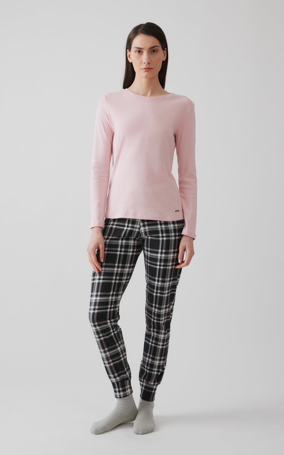 Γυναικεία μακρυμάνικη μπλούζα της εταιρείας Minerva, κατασκευασμένη από 100% βαμβακερό rib ύφασμα υψηλής ποιότητας για φυσική ελαστικότητα και άνετη εφαρμογή. Διαθέτει στρογγυλή λαιμόκοψη και minimal σχεδιασμό σε απαλό ροζ χρώμα, που αναδεικνύει τη θηλυκότητα με διακριτικό τρόπο. Ιδανική επιλογή για να συνδυαστεί με το Μαύρο Καρό παντελόνι της ίδιας χειμερινής σειράς, προσφέροντας κομψότητα και ζεστασιά σε κάθε στιγμή της ημέρας.