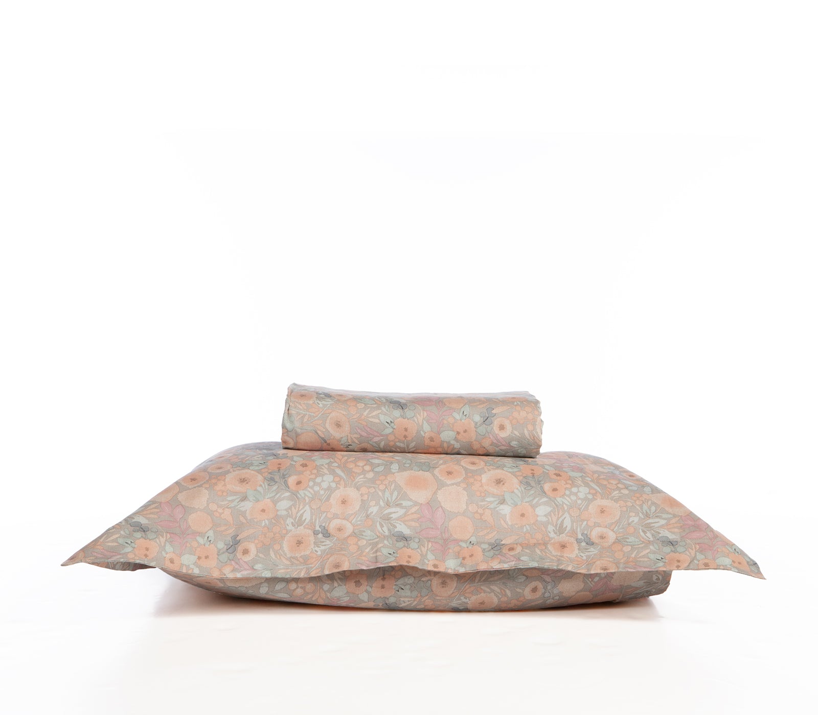 Σετ παπλωματοθήκης υπέρδιπλη σε γκρι απόχρωση με φλοράλ σχέδιο, της εταιρείας Nef Nef Homeware, κατασκευασμένο από βαμβάκι-σατέν. Το σετ περιλαμβάνει μία παπλωματοθήκη διάστασης 240x230 cm με φερμουάρ, με την εξωτερική πλευρά να έχει πυκνό φλοράλ μοτίβο με λουλούδια και φύλλα σε παστέλ αποχρώσεις, ενώ η εσωτερική πλευρά είναι μονόχρωμη σε ανοιχτό γκρι. Συνοδεύεται από δύο μαξιλαροθήκες τύπου Oxford διάστασης 52x72 cm που ακολουθούν το σχέδιο της παπλωματοθήκης.Ιδανικό για να χαρίσει στο υπνοδωμάτιο σας μια γαλήνια ατμόσφαιρα με ρομαντική διάθεση.Ολοκληρώστε το αποτέλεσμα με σεντόνια και παπλώματα που ενσωματώνονται ιδανικά στην αισθητική του χώρου σας.