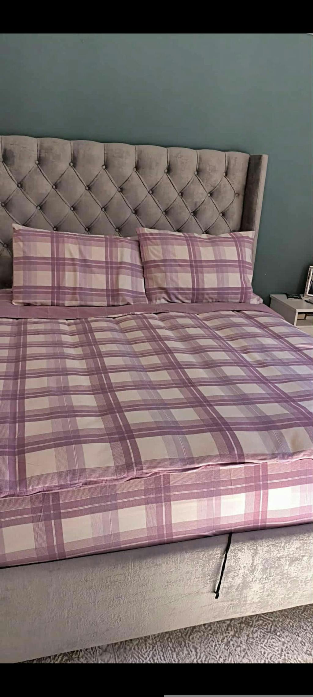 Σετ υπέρδιπλη φανελένια παπλωματοθήκη της εταιρίας Nef-Nef Homeware με καρό μοτίβο σε μωβ και λευκές αποχρώσεις. Είναι κατασκευασμένη από 100% βαμβάκι και έχουν επεξεργασία φανέλας εσωτερικά και εξωτερικά. Το σετ περιλαμβάνει μία παπλωματοθήκη 240Χ230 και δύο μαξιλαροθήκες 52Χ72. Η φανελένια παπλωματοθήκη προσφέρει αίσθηση ζεστασιάς και είναι ό,τι χρειάζεσαι για τον χειμώνα.
