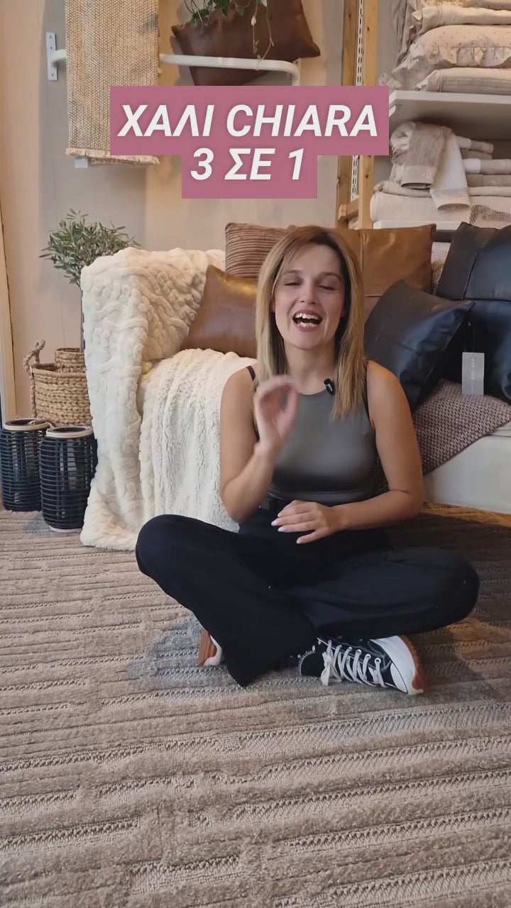 Σετ κρεβατοκάμαρας Chiara της εταιρείας Royal Carpet, το οποίο περιλαμβάνει δύο χαλιά 70x140cm (χρησιμοποιούνται εκατέρωθεν του κρεβατιού) και ένα χαλί 70x200cm (χρησιμοποιείται μπροστά από το κρεβάτι), σε εκρού απόχρωση με γεωμετρικό μοτίβο σε καφέ τόνους που θυμίζει αφηρημένο δίκτυο γραμμών. Κατασκευασμένο από 100% πολυπροπυλένιο, συνδυάζει απαλή υφή με αντοχή στη χρήση. Το υφαντό υπόστρωμα παρέχει σταθερότητα, ενώ η αντιστατική του ιδιότητα αποτρέπει την προσκόλληση σκόνης και χνουδιών. Ένα σετ υποαλλεργικό, οικολογικό και εύκολο στη συντήρηση, ιδανικό και για εσωτερικούς χώρους. Συνδυάστε το με τα λευκά είδη μας για ένα ολοκληρωμένο αποτέλεσμα.