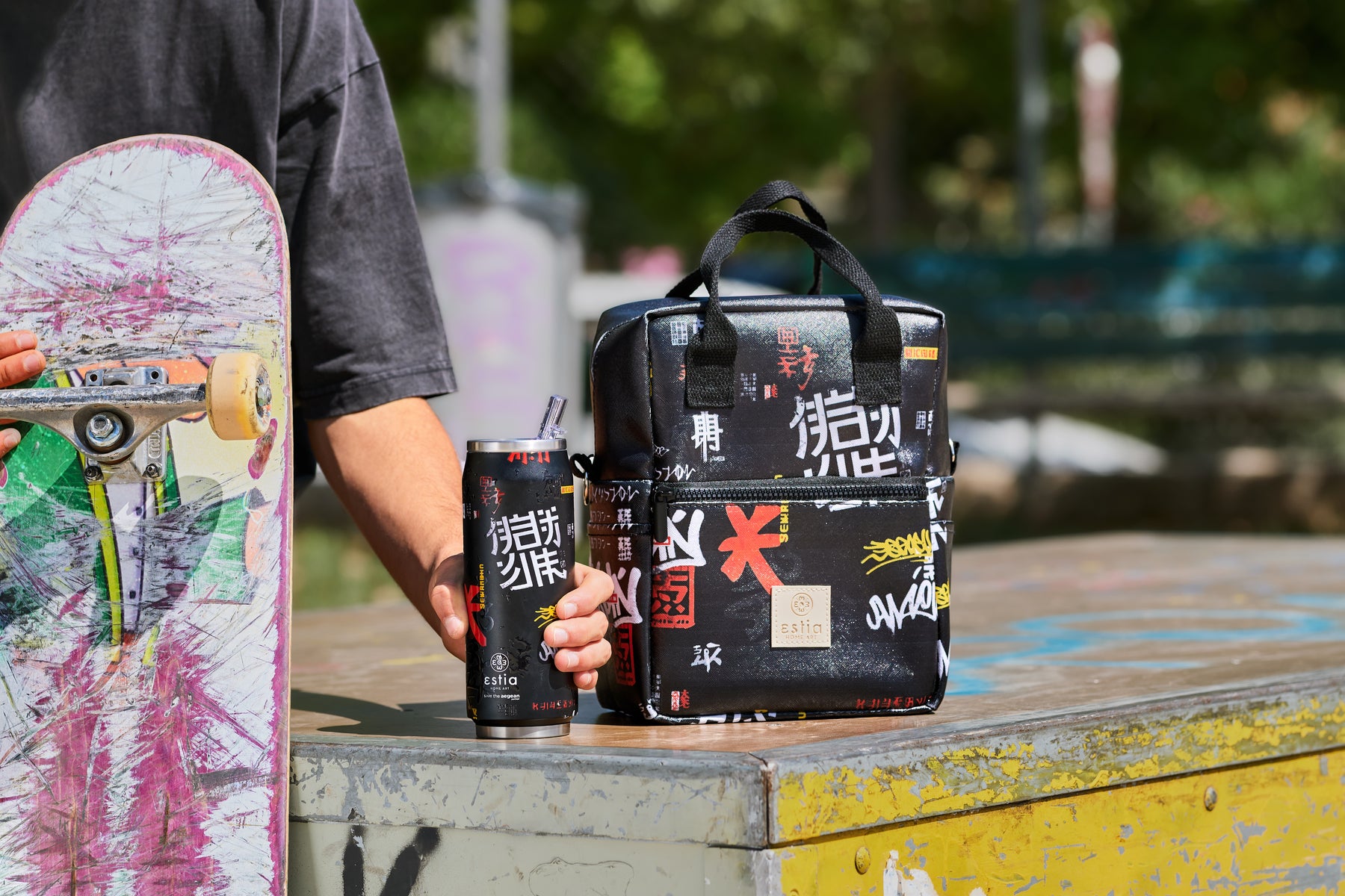 Estia Ποτήρι Θερμός Με Καλαμάκι Save The Aegean 500ml Μαύρο Με Ιαπωνικό Στυλ Tokyo Underground Travel Cup