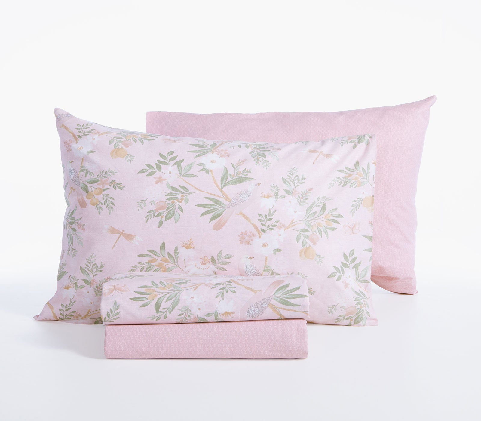 Σετ σεντόνια υπέρδιπλα Dreamel σε απαλό ροζ χρώμα της εταιρείας Nef-Nef Homeware. Είναι κατασκευασμένο από 100% βαμβάκι υψηλής ποιότητας που προσφέρει απαλή, φυσική υφή και ευχάριστη αίσθηση στον ύπνο. Το πανωσέντονο σε διάσταση 240Χ270cm διαθέτει ρομαντικό floral μοτίβο με λουλούδια και φύλλα σε αποχρώσεις ροζ, πράσινου και εκρού, ενώ το κατωσέντονο διάστασης 240Χ270cm είναι μονόχρωμο σε ροζ απόχρωση. Το σετ ολοκληρώνεται με δύο μαξιλαροθήκες 52Χ72cm που ακολουθούν το ίδιο λουλουδάτο σχέδιο. Συνδυάστε το με διακοσμητικές μαξιλαροθήκες και κουβερλί της αρεσκείας σας για ένα ολοκληρωμένο αποτέλεσμα!
