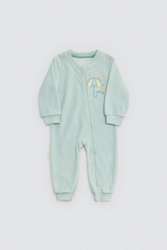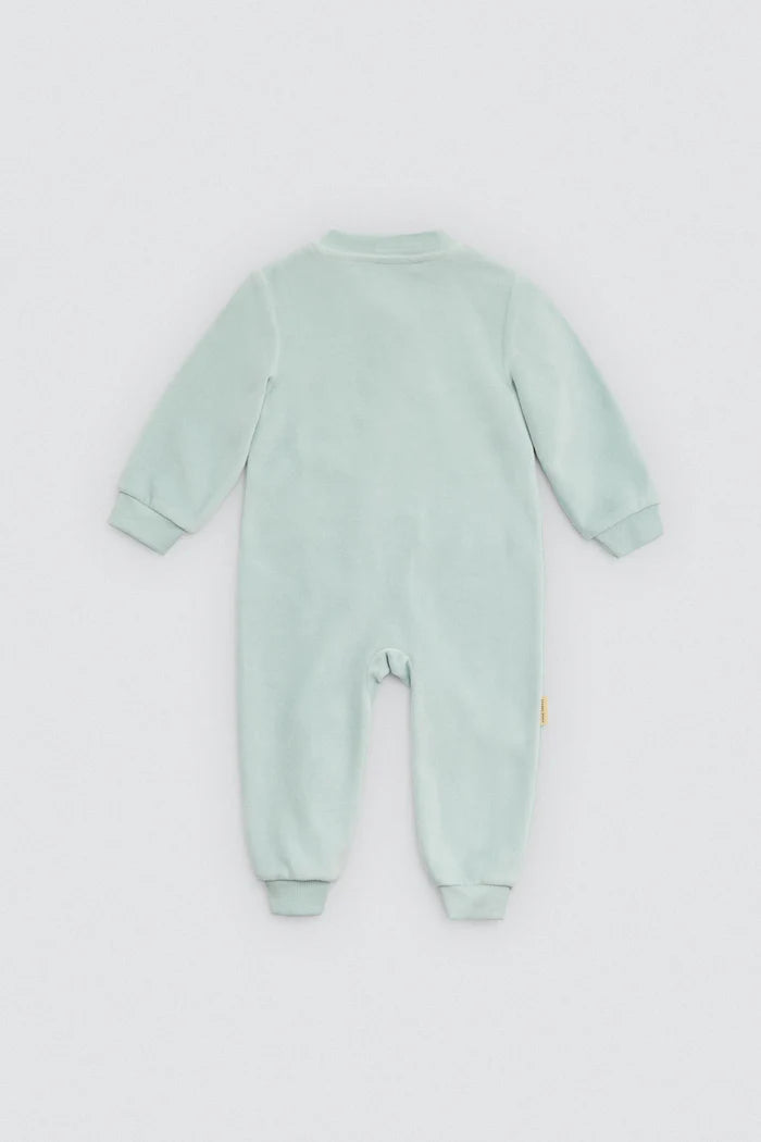 Βρεφικό unisex ολόσωμο κορμάκι της εταιρείας Ysabel Mora, κατασκευασμένο από απαλό και ποιοτικό ύφασμα με ζεστό φλις στο εσωτερικό του, ιδανικό για τις πιο κρύες ημέρες. Διαθέτει μακρύ μανίκι, κλειστά ποδαράκια και πρακτικό μπροστινό φερμουάρ που διευκολύνει στο ντύσιμο και στην αλλαγή. Το βεραμάν χρώμα και το διακριτικό κέντημα προσθέτουν μια γλυκιά, παιχνιδιάρικη πινελιά, κατάλληλη για ύπνο ή χαλάρωση στο σπίτι. Συνιστάται πλύσιμο σε χαμηλή θερμοκρασία και από την ανάποδη πλευρά, ενώ καλό είναι να αποφεύγεται το στεγνωτήριο ώστε να διατηρείται η απαλότητα του υφάσματος.